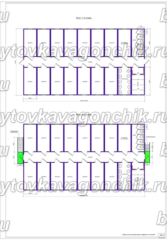 Планы двухэтажного общежития на 100 человек из 36 шт БК